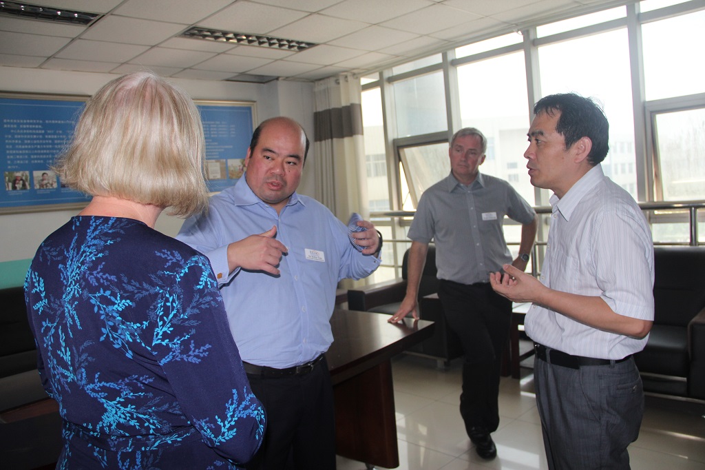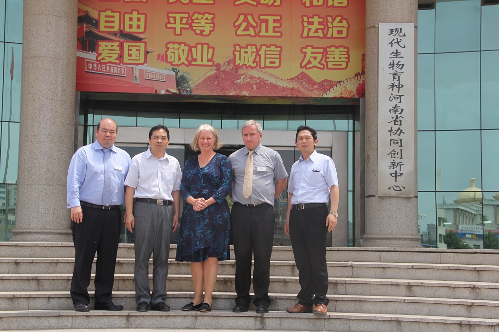 2017年5月19日上午,新西兰国立联合理工学院(UCOL)校长Leeza Boyce女士、常务副校长Arthur Chin博士、副校长Jerry Shearman博士等一行3人,应邀参观现代生物育种河南省协同创新中心。在0号楼创新中心实验室,访问团一行参观了小麦、棉花、玉米等实验室,生命科技学院院长刘明久教授向访问团介绍中心的研究任务、研究优势以及取得的成绩。访问团客人仔细询问了中心运行机制,并对太阳城平台(中国)官方网站 作物学研究取得的突出成绩表示赞赏。双方还就校企合作模式、管理模式、协同创新激励措施等方面进行了深入讨论与交流。