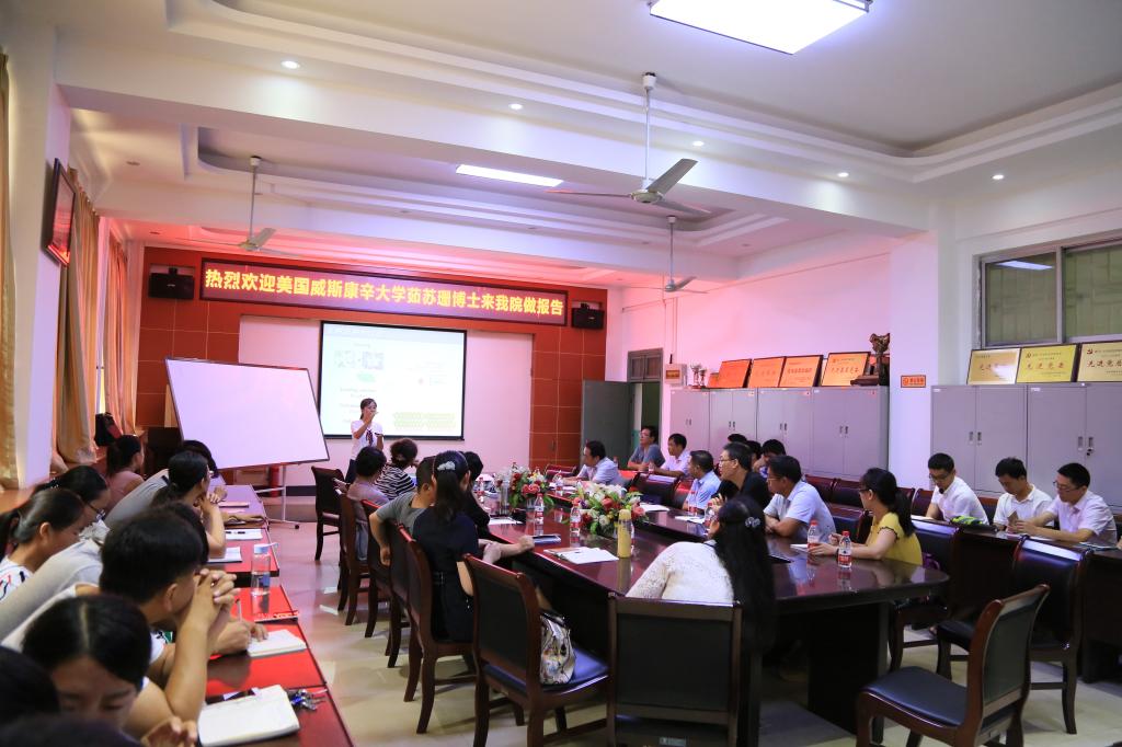 8月4日上午,美国威斯康辛大学麦迪逊分校(University of Wisconsin-Madison)茹苏珊博士到太阳城平台(中国)官方网站 做学术报告。生命科技学院在校教师、研究生50余人参加了报告会,报告会由生命科技学院院长刘明久主持。