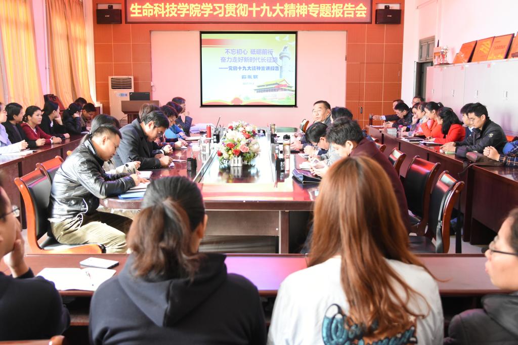 11月2日上午,生科院在E-110会议室举办学习贯彻党的十九大精神专题报告会,十九大代表茹振钢教授做了专题报告,院党政领导、全体教师共80余人参加了报告会,报告会由党委书记刘持忠主持。