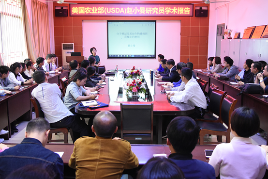 赵小曼研究员做了《分子标记及其在作物遗传育种上的应用》的报告,主要介绍了分子标记的分类、分子标记的特点、分子标记在作物育种上的具体应用等。赵小曼研究员结合自己的工作,生动形象地阐述了分子标记的应用,报告会后与参会人员进行了深入交流。该报告会很好地促进了学术交流,同时扩大了学生的学术视野。