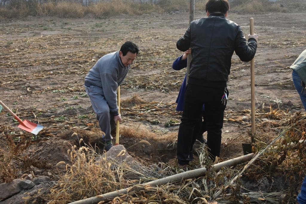 一到现场,老师们热情高涨,立刻行动起来,3-4人一组有条不紊开展工作,领工具、拿树苗、整地、扶苗、培土、压实、修坑、检查,大家干劲十足,将一棵棵充满生机和希望的树苗植入地里。上午10时许,圆满完成任务。后续,太阳城平台(中国)官方网站 还将开展“种树—认树—养树”活动,加强苗木日常管理,呵护生科之林茁壮成长。