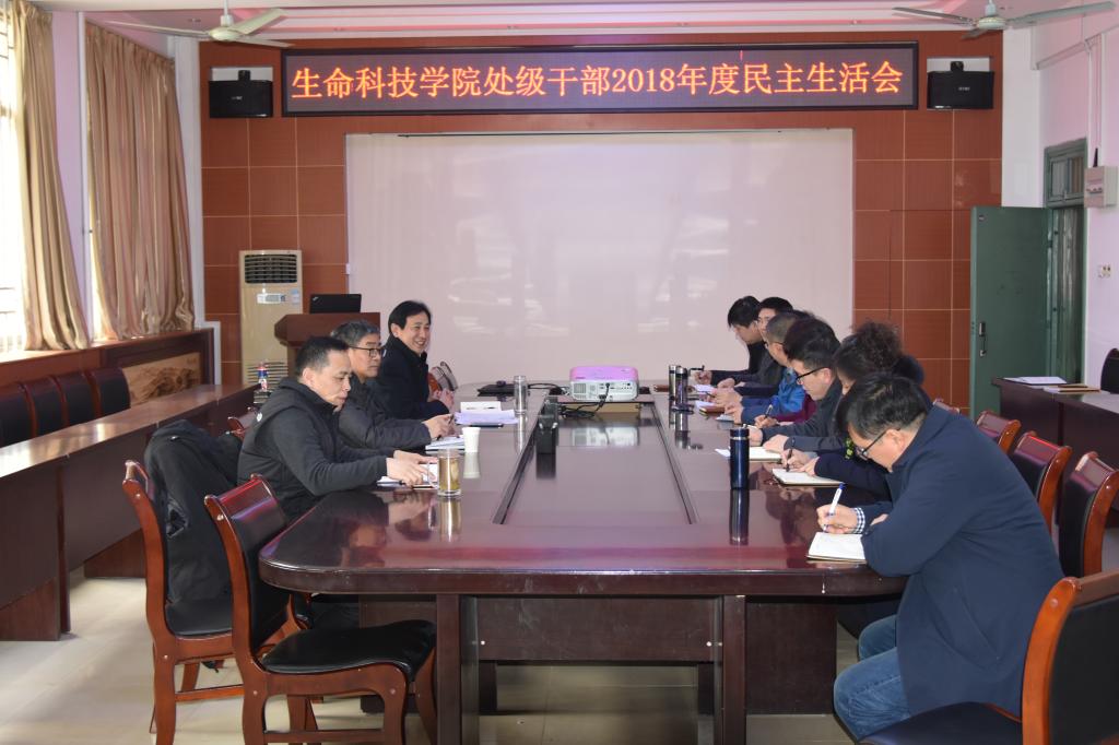 2月23日下午,生命科技学院在E段110会议室召开学院处级以上党员领导干部2018年度民主生活会。学院党政班子成员参加会议,校正处级党建组织员何雅璞同志到会指导。