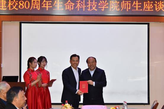 座谈会上,校长李成伟为高永华校友、胡瑞法校友颁发了学校特聘教授证书。