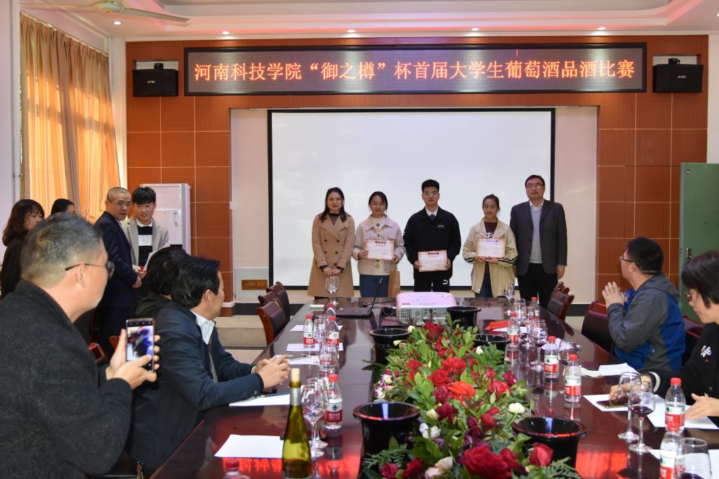 本次比赛由我校张明霞博士和赵现方博士的葡萄酒团队提供学术支持,由河南省御之樽进出口贸易公司冠名和赞助,由一品红酒工作室、河南省牧歌众酿葡萄酒庄有限公司和封丘县皇池酿造坊赞助协办,经过初赛竞猜葡萄品种、复赛竞猜葡萄酒产地和决赛混合调酒竞猜三轮比赛,最终决出一等奖1组、二等奖2组、三等奖7组,其中生物发酵172班的李旭、郭甜甜和发酵182班的耿亚琼组成的竞赛小组获得了冠军。