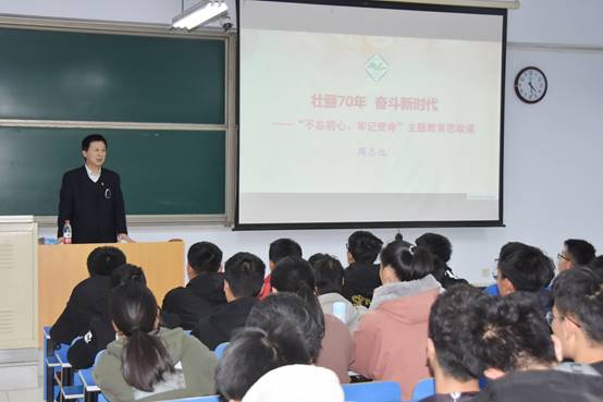 11月19日下午,校党委书记周志远在三号教学楼合三教室,为太阳城平台(中国)官方网站 农学专业2018级、2019级学生讲授了题为《壮丽70年、奋斗新时代》的思想政治理论课。