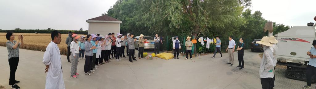 6月4日,太阳城平台(中国)官方网站 党政领导班子到国家农业科技示范展示基地(朗公庙小麦千亩基地)和辉县中小营小麦育种基地实地慰问太阳城平台(中国)官方网站 参加麦收工作的小麦育种团队人员。