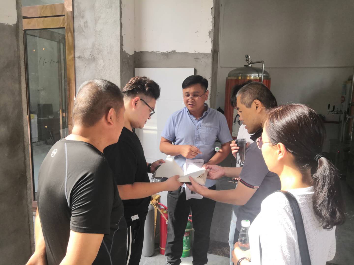 在校地结对帮扶办副主任王锐带领下,赵现方一行分别来到王团结葡萄采摘园和商水县绿苑果业专业合作社,现场讲解了葡萄酒酿造的原料选择和发酵过程中的注意事项。赵现方博士针对白兰地蒸馏和陈酿中的问题进行了详细的答疑,并现场解决了白兰地酿制过程中黑色漂浮物的问题。在红高粱精酿啤酒坊,赵现方一行向王伍俊经理赠送了技术书籍和工坊啤酒生产的相关标准等资料。李林波博士对其黄啤、黑啤和白啤工艺进行指导和答疑,以及传授如何避免啤酒发酵罐的灭菌死角。在白寺镇树莓种植合作社,杨雪芹博士详细讲解了树莓种植过程中的施肥技术。