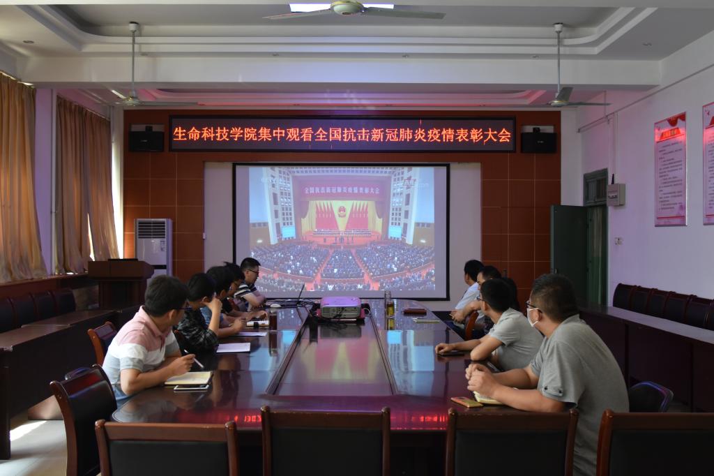 9月8日上午10时,全国抗击新冠肺炎疫情表彰大会在北京人民大会堂隆重举行。中共中央总书记、国家主席、中央军委主席习近平向国家勋章和国家荣誉称号获得者颁授勋章奖章并发表重要讲话。大会还对全国抗击新冠肺炎疫情先进个人、先进集体,全国优秀共产党员、全国先进基层党组织进行表彰。我院教师在E110会议室集中观看直播,各党支部分别组织师生收听收看了表彰大会现场直播。
