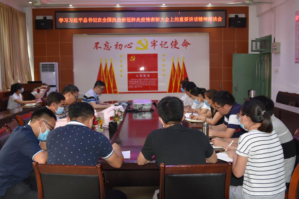 任贯中摘要领学了习近平总书记在全国抗击新冠肺炎疫情表彰大会上的讲话。教师和学生代表纷纷发言,畅谈了自己收听收看表彰大会以及学习习近平总书记在表上大会上讲话的感受。