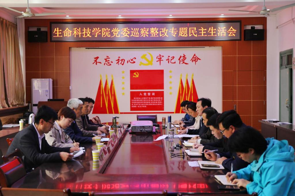 4月22日下午,生命科技学院党委在实验楼E110会议室召开巡察整改专题民主生活会。校第二巡察组组长叶孟韬,巡察办主任熊仁杰,党委组织部副部长陈腾,纪委(监察专员办公室)第二纪检监察室主任、第二巡察组副组长宗辉,第二巡察组副组长方强到会指导。会议由党委书记余鹏主持。