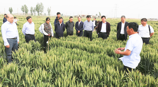 河南省科技厅副厅长夏培臣、河南省科技厅农村科技处处长李锦辉、新乡市科技局局长田发银、新乡市科技局副局长张国强等有关领导和以杨学举教授为组长的专家组一行到辉县中小营小麦育种基地进行现场考察,我校副校长贾积身、科技处、生命科技学院等有关负责人陪同考察。欧行奇教授对培育的矮秆多抗高产小麦新品种(品系)百农307、百农321、百农365、百农607田间表现现场进行了详细讲解,专家组对小麦新品种(品系)的优异表现给予了高度评价和肯定。