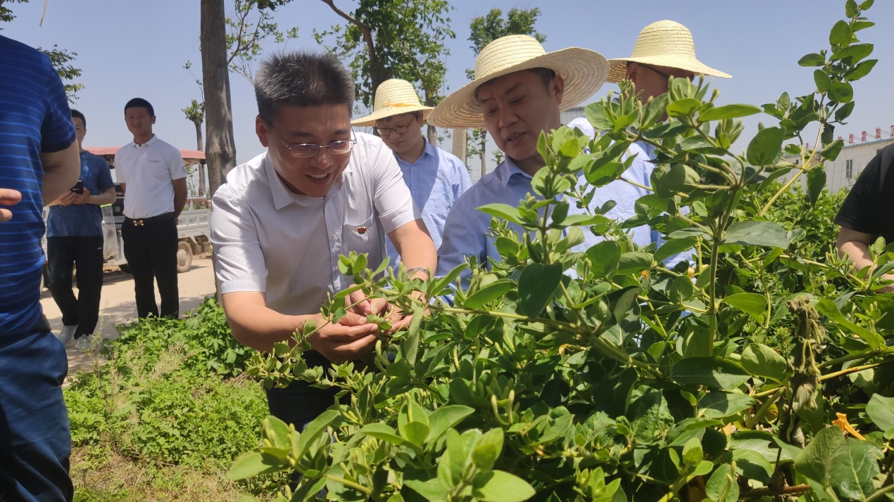 徐金柱组长一行来到封丘县陈固镇东仲宫村金银花产业基地,与我校中药材产业科技特派员服务团团长李勇超亲切交流。徐组长先后问到封丘金银花现状、种植户增收情况、产业链延长等问题。李勇超团长一一回答,在得知金银花平均亩产干花150斤,每亩收益在万元以上,金银花产业为脱贫攻坚做出重要贡献时,徐组长十分欣慰。在谈及金银花产业链时,李勇超说,金银花花蕾不仅可以饮片、茶品,它的枝叶也有广阔用途,如枝叶粉末可以用于饲料提高动物免疫力,提取物可以用于抑菌剂,制作除菌皂等日用品,更可以作为饮品的原料等。徐组长表示,要加大力度研发,快速投入市场,让更多的群众受益。