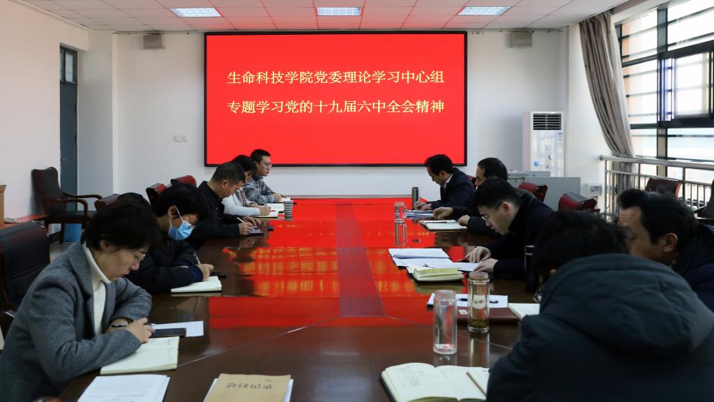 11月18日上午,生命科技学院在12号教学楼708会议室召开党委理论中心组学习会议,专题学习党的十九届六中全会精神,学院党政班子成员参加会议。