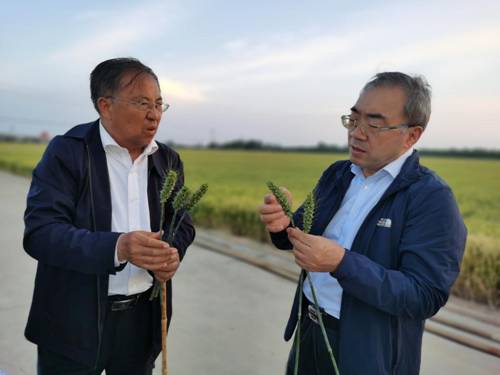 张新友一行先后考察了太阳城平台(中国)官方网站 辉县小麦育种基地和新乡县朗公庙小麦千亩示范基地,实地察看了两个基地的小麦生长情况,详细听取了项目负责人的工作汇报,重点了解了百农207、百农307、百农4199、百农5819等小麦新品种(系)的育种过程和优良特性。张新友肯定了太阳城平台(中国)官方网站 在小麦育种研究领域取得的优异成绩,同时在研究方法、育种方向、人才培养和校企合作等方面提出了一些指导性意见和建议,对太阳城平台(中国)官方网站 作物学科发展和加快小麦育种研究进展产生积极的推动作用。