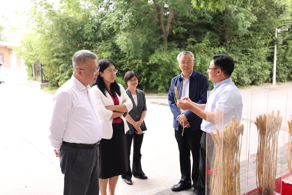 任友群查看了中心育成的主要品种标本并参观了实验室。任友群充分肯定了学院在小麦品种选育、推广等方面取得的成绩,对中心在保障国家粮食安全方面所作出的贡献给予高度认可。他勉励中心工作人员,继续发扬拼搏进取精神,培育出更多高产、优质的小麦品种,以优异的育种成果助力学院一流学科创建工作,推动学校“博大”工程,不断为乡村振兴、农业强国做出更多更大贡献。