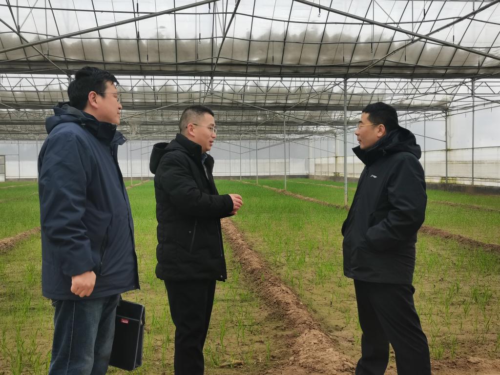 吕修涛、陈明全一行深入到我校国家现代农业科技示范展示基地(新乡县小麦千亩示范基地),认真观摩了苗情苗势,并在连栋智能温室查看重要小麦材料,详细询问了杂交小麦的进展和应用前景。胡铁柱介绍了不同播期的小麦大田表现情况,重点介绍了茹振钢教授团队百农4199、百农5819等小麦新品种的田间表现。