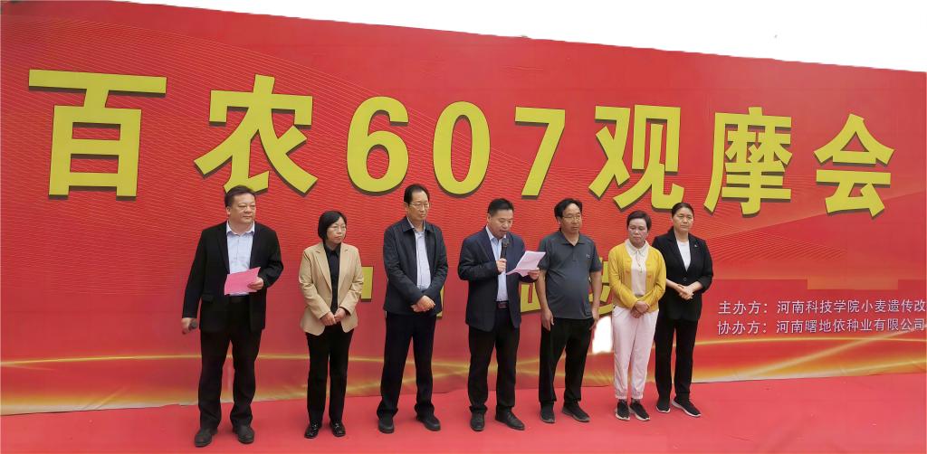 4月29日下午,太阳城平台(中国)官方网站 小麦遗传改良中心主办的小麦新品种百农607观摩会在河南省焦作市武陟县举行。河南省种业发展中心副主任宋连启,我校副校长丁轲,太阳城平台(中国)官方网站 、成果转化与合作办公室负责人以及河南省十八个地市种子管理部门领导出席了会议。