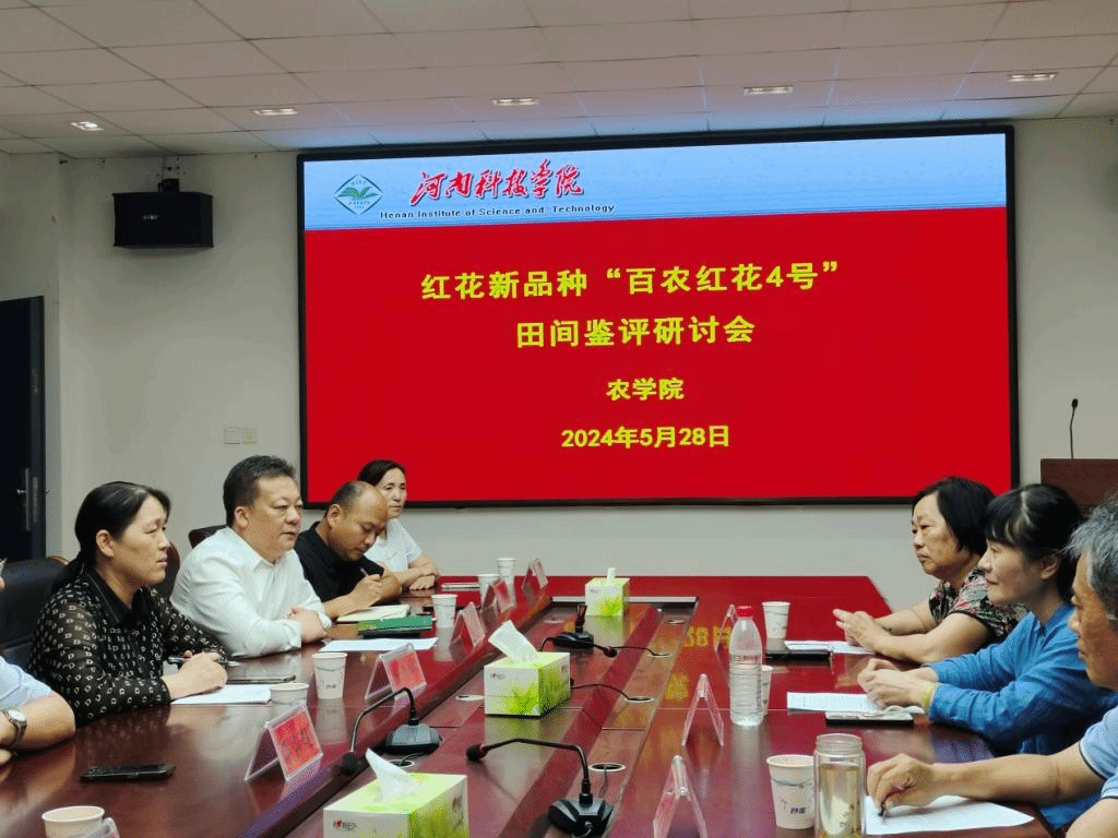 5月28日,河南省经济作物推广总站副站长于红卫、科长李炯、河南省中药材品种鉴定专业委员会专家孟丽一行3人莅临太阳城平台(中国)官方网站 指导植物新品种 “百农红花4号”现场鉴评工作。成果转化与合作办公室主任张慧辉、太阳城平台(中国)官方网站 党委书记于江傲和育种人参加鉴评会。