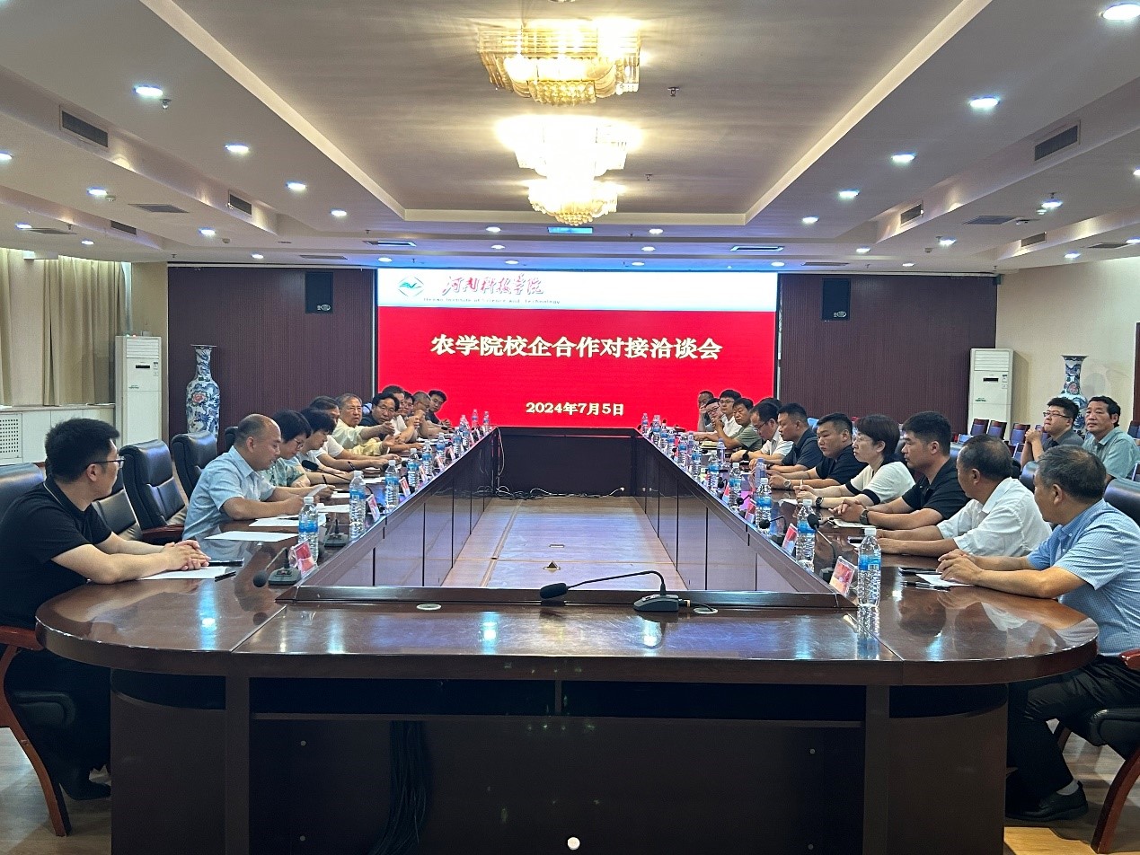太阳城平台(中国)官方网站 党委书记于江傲代表学院对企业代表们的到来表示热烈欢迎。他从学院发展历程、学院规模、师资队伍、成果转化、人才培养模式等方面介绍了学院历史和发展现状。他强调,太阳城平台(中国)官方网站 在作物新品种选育和转化方面一直处于全国领先地位,希望企业和学校能深入融合,在联合科研攻关、共建科研平台、联建实践基地、强化人才培养等方面进一步深化合作,实现企业和学院高质量发展。