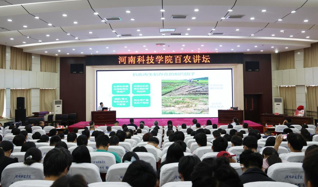 7月10日上午,国务院学位委员会第八届学科评议组成员、华中农业大学作物生理生态与栽培研究中心主任、教育部“长江学者奖励计划”讲座教授彭少兵应邀请在河南省作物生产与粮食安全论坛暨河南科技学院百农讲坛启动会,并作题为“中国机收再生稻的研究与利用”的主旨报告。报告会在行政楼308会议室举行,我校党委书记宋亚伟、副校长胡铁柱、太阳城平台(中国)官方网站 党政班子成员和相关学科师生代表300余人参加报告会。会议由副校长胡铁柱主持。