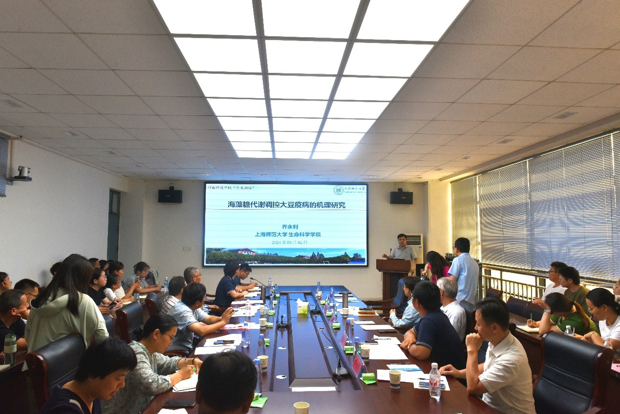 8月2日下午,国家优秀青年科学基金获得者、国家海外高层次人才、中国农业科学院A类青年英才、上海市曙光人才、上海师范大学生命科学学院乔永利教授应邀在河南科技学院第二期“百农讲坛”上作题为“海藻糖代谢调控大豆疫病的机理研究”的主旨报告。报告会在12号楼708会议室举行,太阳城平台(中国)官方网站 党政班子成员和相关学科师生代表70余人参加报告会。会议由小麦中心副主任董娜主持。