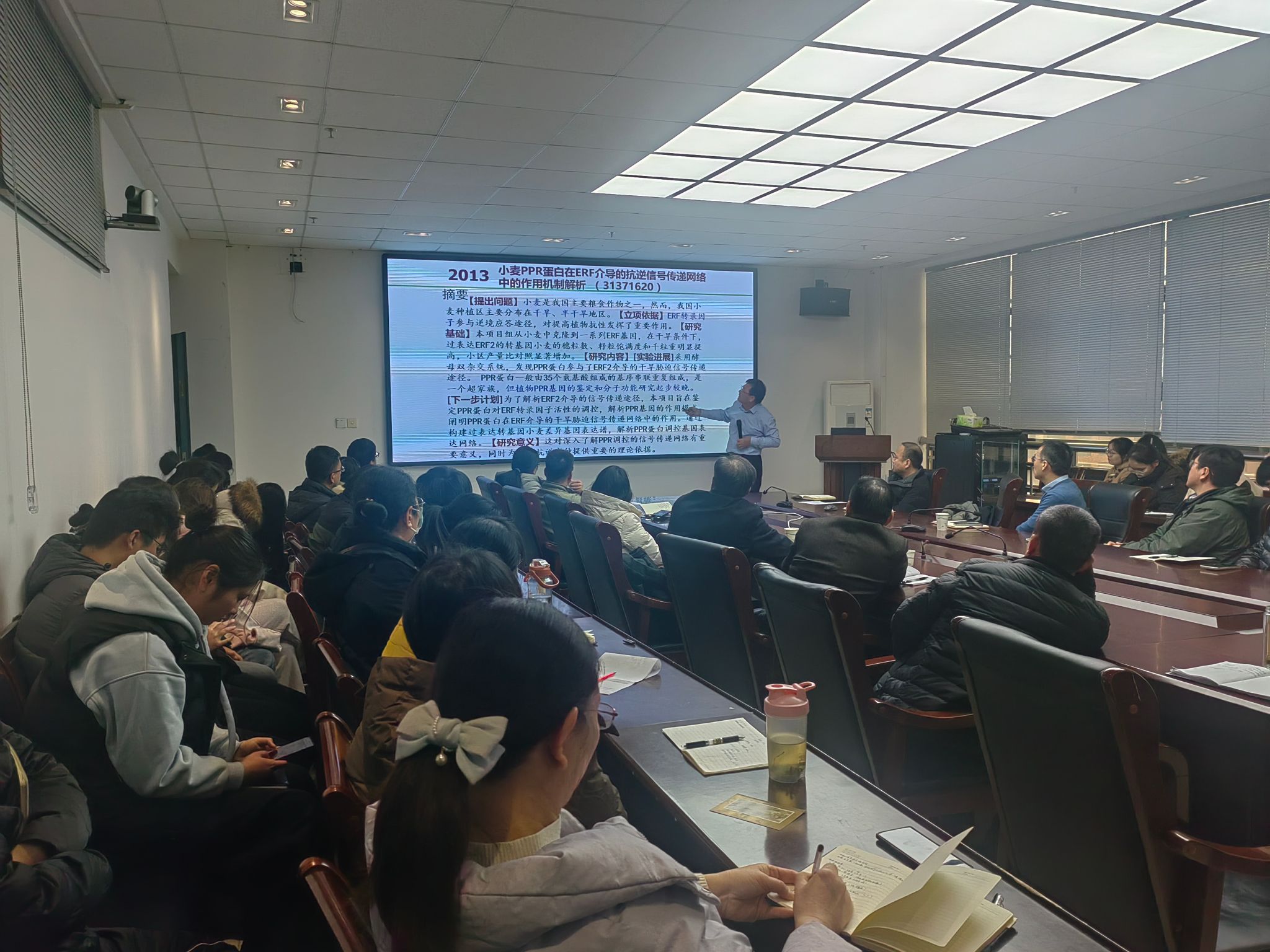 在学术报告中,徐兆师研究员从科学研究的基本逻辑与问题导向出发,系统阐释了小麦在抗旱、耐盐、抗病等逆境胁迫下的分子调控网络。他详细介绍了关键功能基因的克隆策略、作用机制的深入解析,以及如何利用分子设计育种技术创制具有多重抗逆性的小麦新种质。整场报告内容丰富、逻辑严密、层层递进,既有理论高度,又贴近育种实践,为学院相关团队在抗逆小麦品种选育与理论基础研究方面提供了重要的思路借鉴和方法指导。