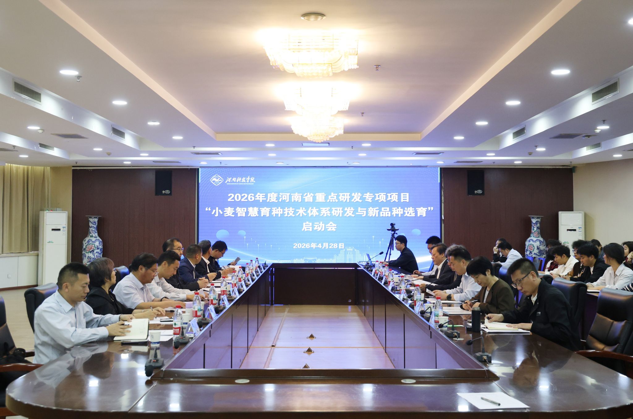 4月28日上午,由河南科技学院牵头的“十五五”河南省重点研发专项“智慧育种”专题“小麦智慧育种技术体系研发与新品种选育”项目启动会在学校办公楼206会议室举行。