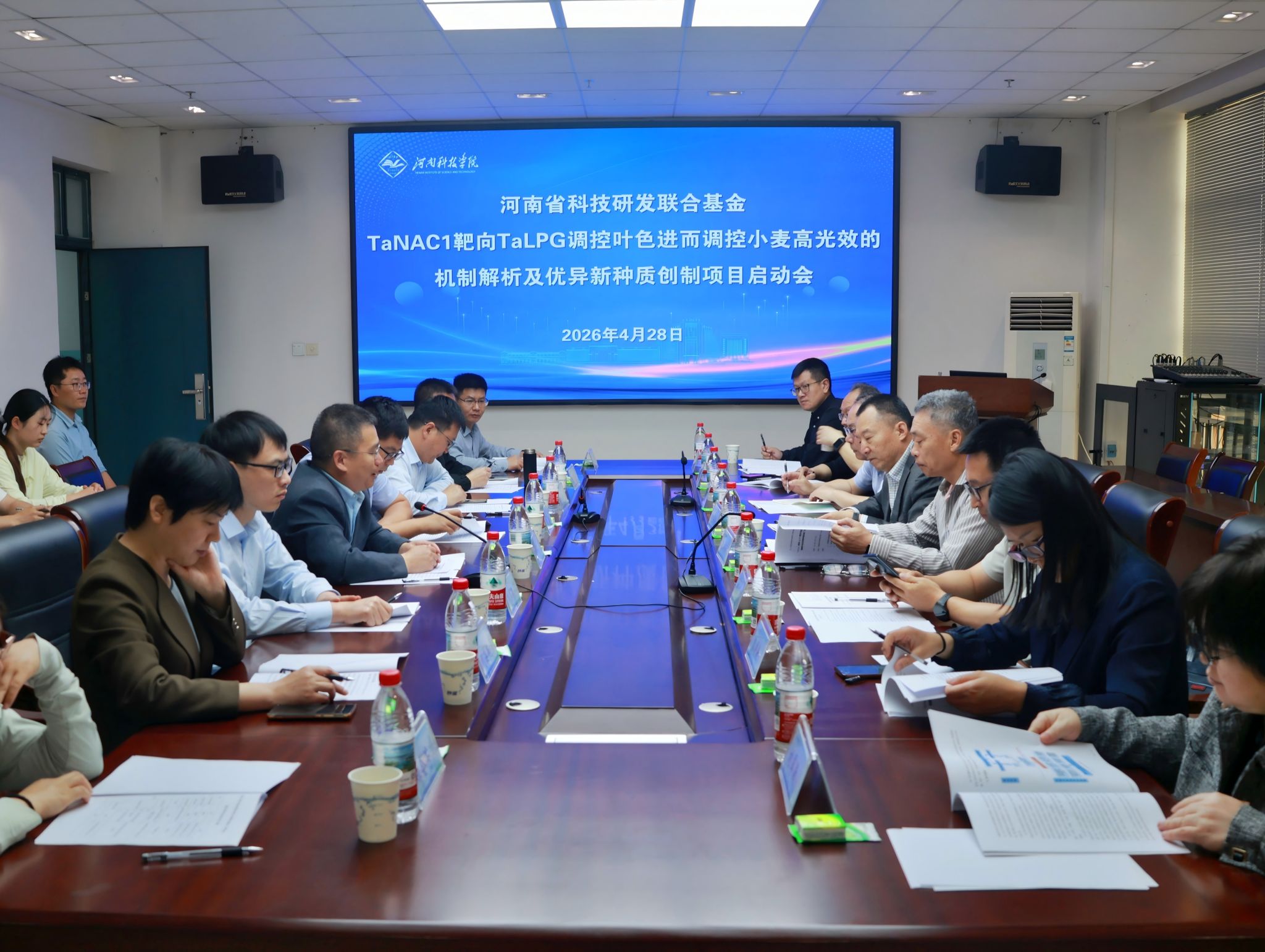 4月28日上午,由我校承担的河南省科技研发计划联合基金(学科类)培育项目——“TaNAC1靶向TaLPG调控叶色进而调控小麦高光效的机制解析及优异新种质创制”启动会在知行楼708会议室召开。会议特邀中国科学院、中国农科院、西北农林科技大学、扬州大学、山东农业大学、河南大学等10名国内高校科研院所的相关领域专家莅临现场进行指导。