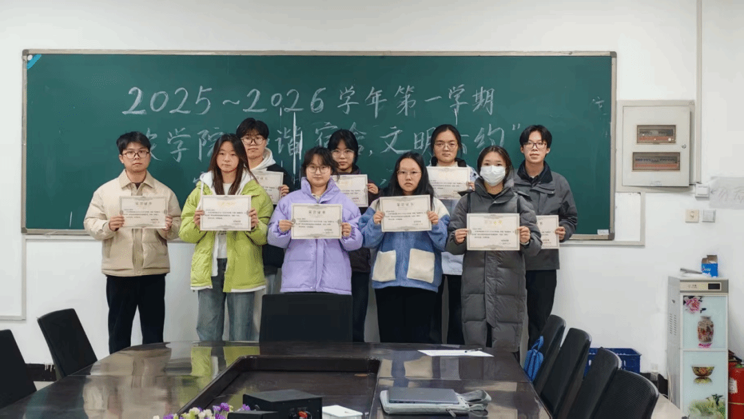 评审环节严格遵循公平、公正、公开原则,经过多轮审核与综合评议,最终评选出一等奖2名、二等奖3名、三等奖5名。颁奖仪式上,评委代表为获奖宿舍代表颁发荣誉证书,既肯定了各宿舍在公约制定过程中的用心付出与创新实践,也寄语全体学子以公约为行为准则,自觉践行文明规范,共同营造整洁有序、友爱互助的宿舍环境,用青春力量为校园和谐发展保驾护航。